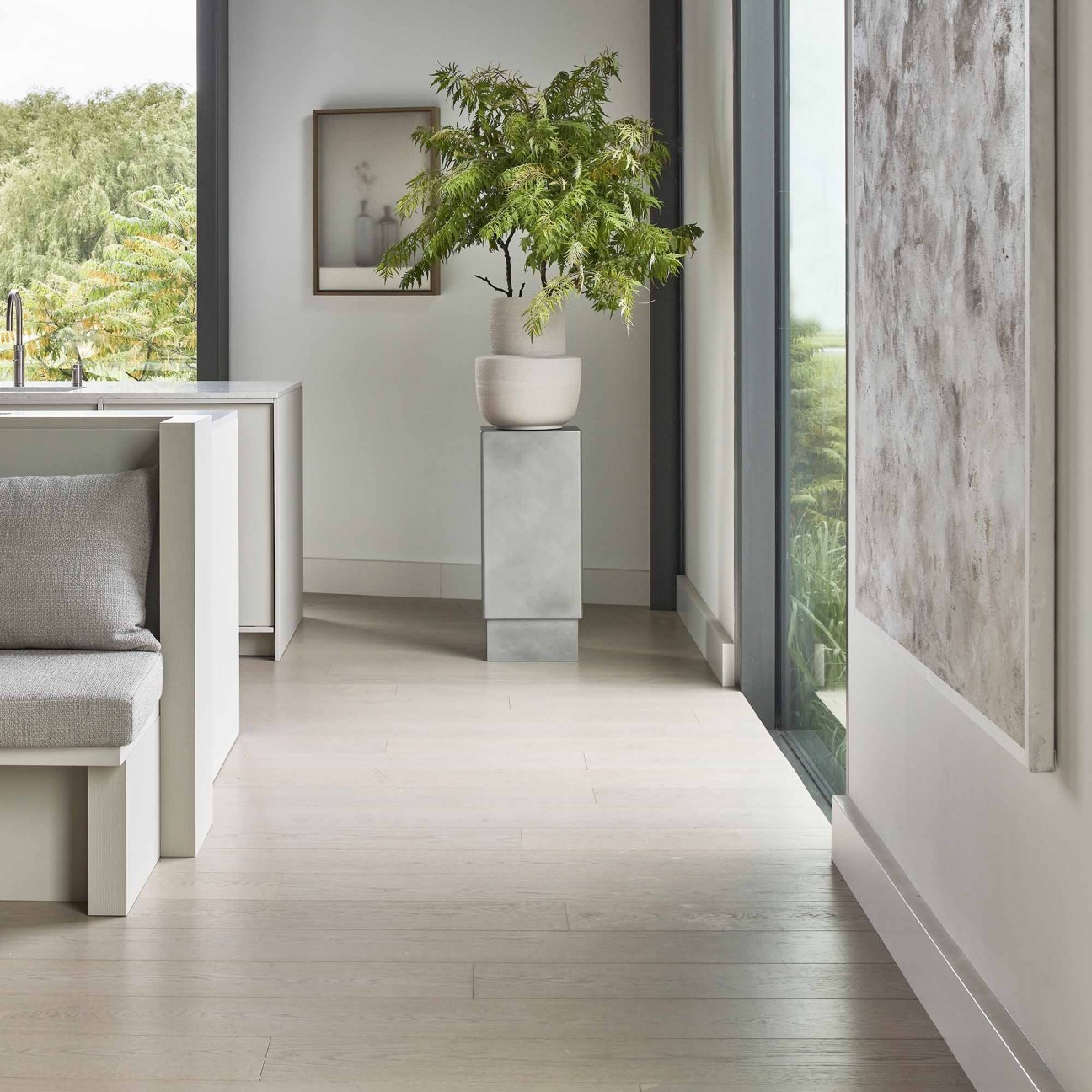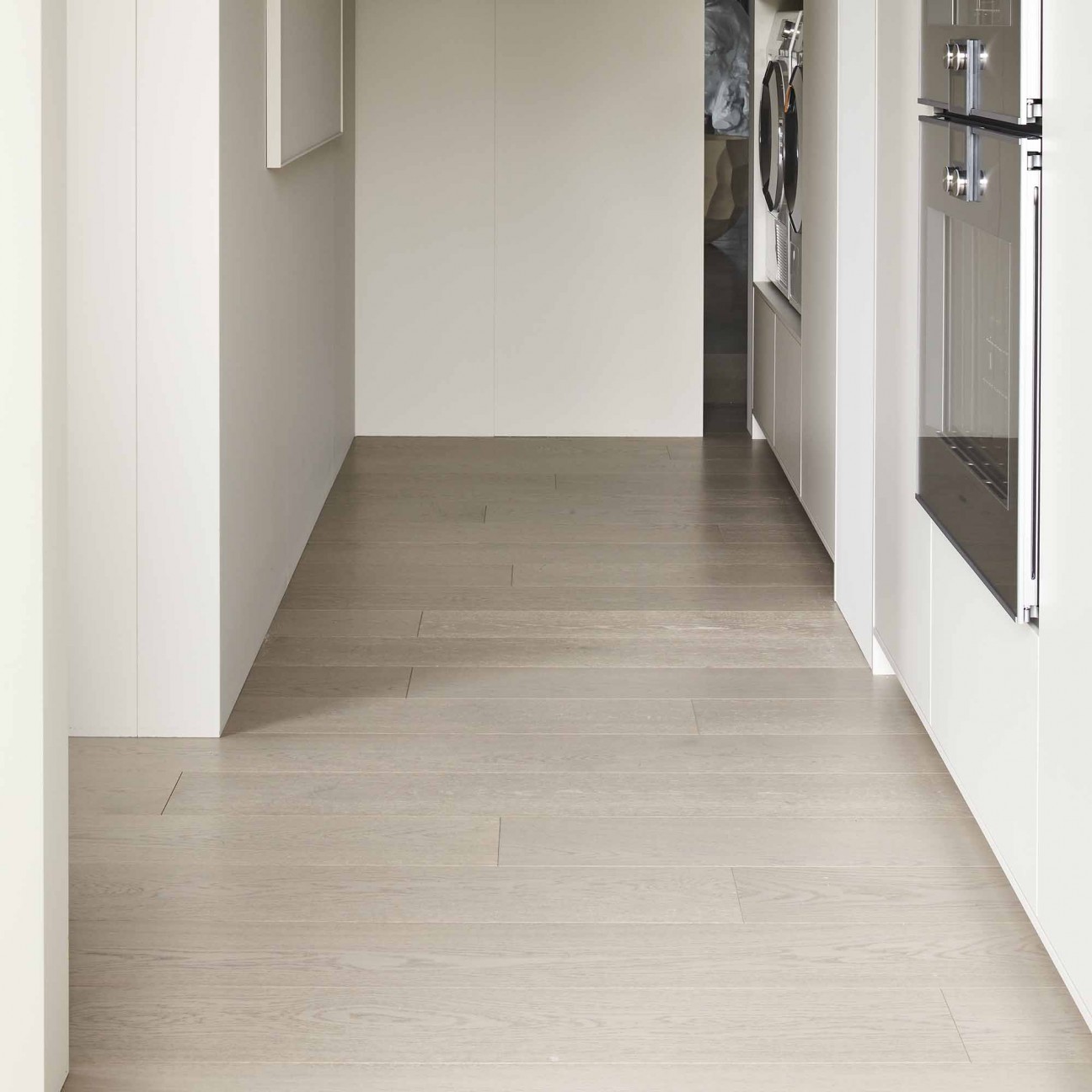 An unique collaboration with PIET BOON resulted in a new high-quality flooring range: the TONE collection. PIET BOON Studio, with its many years of experience in the field of interior design and product development, is ought to be the ideal partner. The result is a timeless flooring collection that creates a serene and rich foundation for every interior. The top layer of the TONE flooring collection is made of oak, which gives the floor a rich and natural look. By using this natural product, each plank is unique. The wood selection of the top layer falls in the Prime category. This means that there’s a minimum of knots visible compared to the Nature Grade category. As a result, the floors have a remarkably peaceful and tranquil look to them. In addition, functionality was also essential to the developing process. For example, the planks are suitable for hydronic underfloor heating and have been provided with a special ceramic lacquer. This lacquer makes the floors extremely wear resistant and colourfast. This makes that the floor is also suitable for busy households and intensely used commercial areas. This means that no concessions have to be made when it comes to design and comfort. We recommend periodically maintenance with Solidfloor Easy Clean and Easy Protect. The Piet Boon by Solidfloor collection is not available at every Solidfloor dealer. Please go to store-locator to see where this collection is presented.