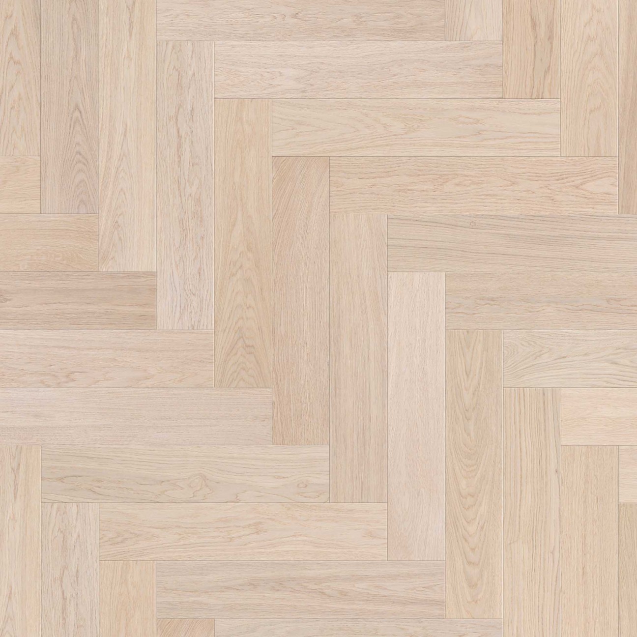 The wooden floors from the Heat collection are specially designed to be installed in combination with floor heating. Because of the high-quality plywood carrier and extremely thin top layer the heat conduction is especially efficient. With a certified heat resistance of 0,08 the entire Solidfloor Heat collection meets the highest standards. Because of this the floor maintains its maximum utility as no energy is lost. Besides the fact that the production takes place in Europe and naturally absorbs Co2, the floor is also very sustainable. The Heat Herringbone Nature Unfinished Look is an oak herringbone floor, finished with a special E-Protect (UV) lacquer. The beauty of wood in its purest form. With the Unfinished look of Solidfloor, this floor maintains the appearance of a floor which hasn’t been treated with oil or lacquer. Because the floor is brushed the wood pattern is especially prominent. This is displayed beautifully in grazing light. The floor has a total thickness of 11mm including the high-quality 4 mm oak top layer. As part of the Nature wood selection, which allows less and smaller knots than in the Mill Run or Rustic selection, this floor has a serene and modern appearance. Periodical maintenance using the Solidfloor Easy Clean and Easy Protect will ensure that your floor stays beautiful for longer, lasting years. In short, this is a quality oak floor with a 25 year guarantee.