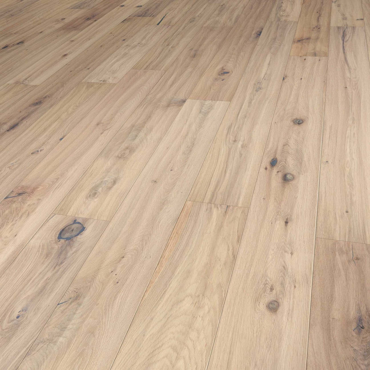 The Desert Unfinished Look is a straight pattern oak floor finished with a transparent, matte oil. The beauty of wood in its purest form. The Solidfloor Unfinished look makes the floor look like it has not been provided with any oil or lacquer treatments. The floors from the Desert collection can be recognized by their sloping surface. This is because the floor are scraped by hand. This quality is displayed beautifully in grazing light. Because the floors are scraped by hand, each plank is slightly different, something that makes the floor unique and personal. The floor has a total thickness of 14mm, including a high-quality 3mm oak top layer. The Rustic+ wood selection, which permits several and larger knots than in the Nature or Rustic selection, gives the floor its lively appearance. The floor is finished with an oxidative oil. With periodical maintenance of the floor with Solidfloor Hardwax Oil White, the floor will remain beautiful longer, lasting for many years. In short, this is a high-quality oak floor with a 25-year warranty.