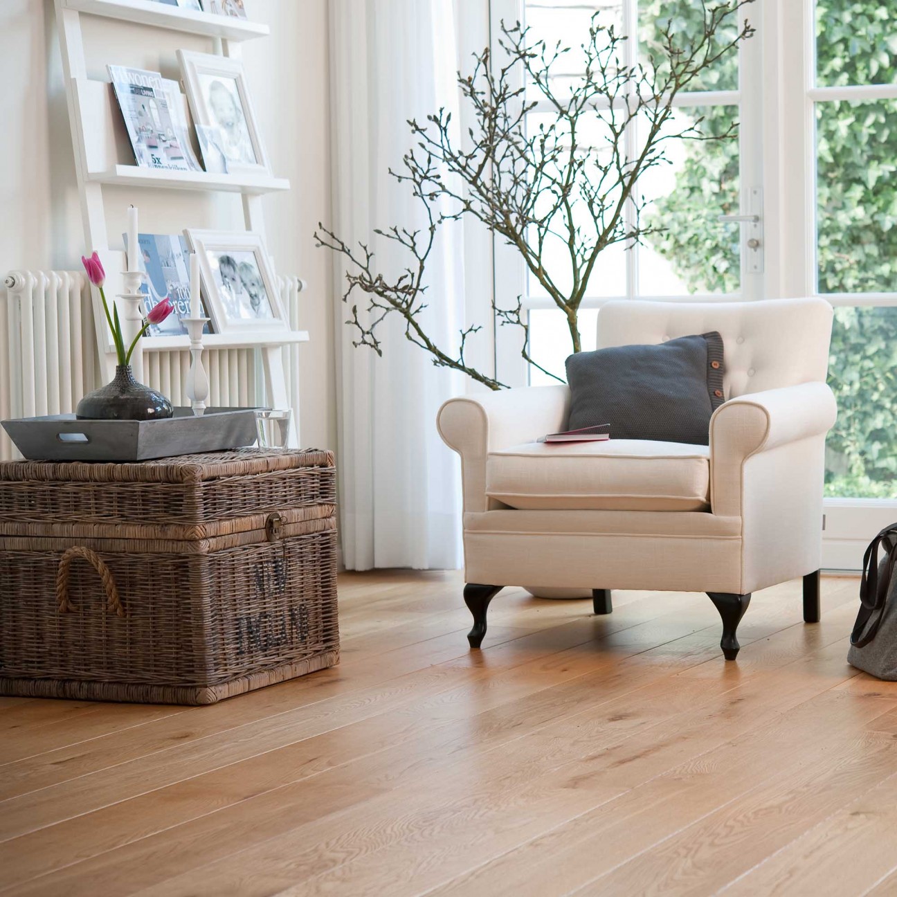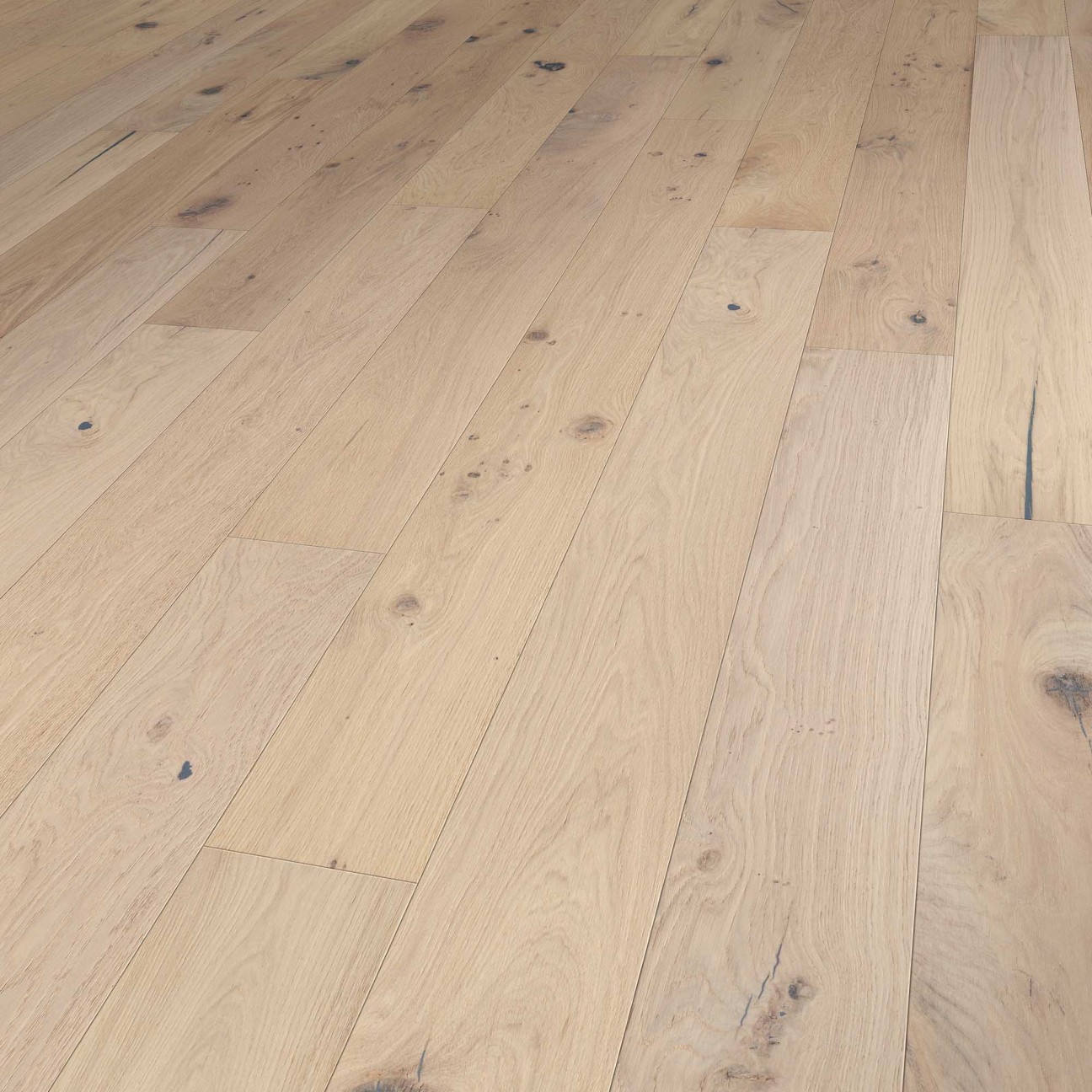 The Forest Unfinished Look is a straight pattern oak floor, finished with a transparent, matte oil. Suitable for floor heating and cooling (hydronic). The beauty of wood in its purest form. With the Unfinished Look of Solidfloor, the wood maintains the appearance of being untouched by oil or lacquer treatments. Because the floor is brushed the wood pattern is especially prominent. This is displayed beautifully in grazing light. The floor has a total thickness of 14mm including the 3 mm oak top layer. As this floor is part of the Rustic+ collection, where more and larger knots are permitted than in the Nature or Rustic selection, the floor has a lively appearance. The floor is finished with a High Solid (UV) oil. With periodical maintenance of the floor with Solid floor Hardwax Oil White, the floor will stay beautiful for longer and last many years. In short, this is a quality oak floor with a 25 year guarantee.