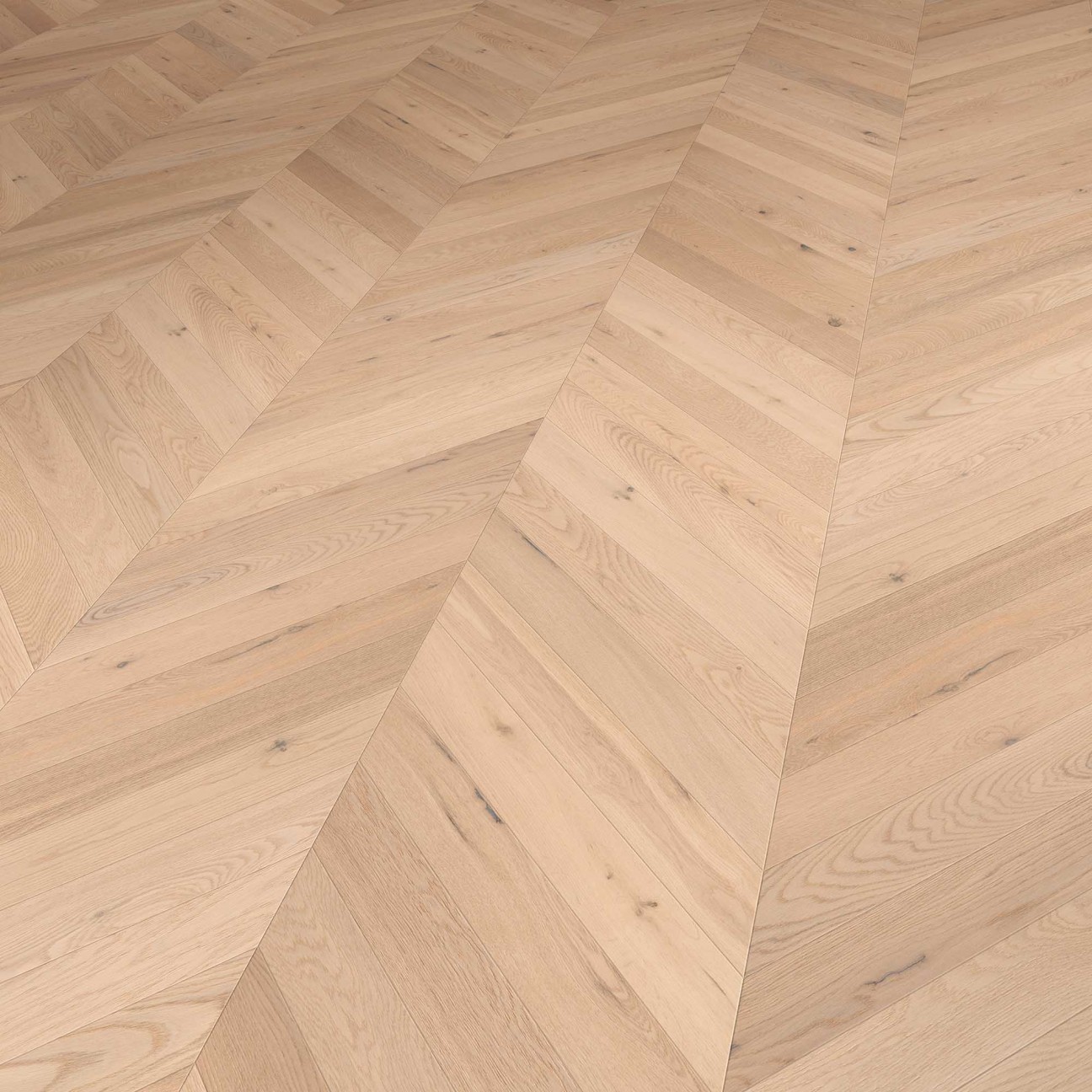 The St. Pauls, part of our Solidfloor Specials collection, is an oak herringbone wood floor that has undergone meticulous treatment to achieve its unique appearance. Beyond the characteristic and eccentric pattern, this floor boasts a fascinating tale of how it attained its distinctive color. For instance, the floor undergoes a smoking process, contributing to its rich, deep hue. The brushing of the floors accentuates the wood pattern, creating a striking effect in grazing light. A final touch is the application of a high-solid (UV) oil finish.