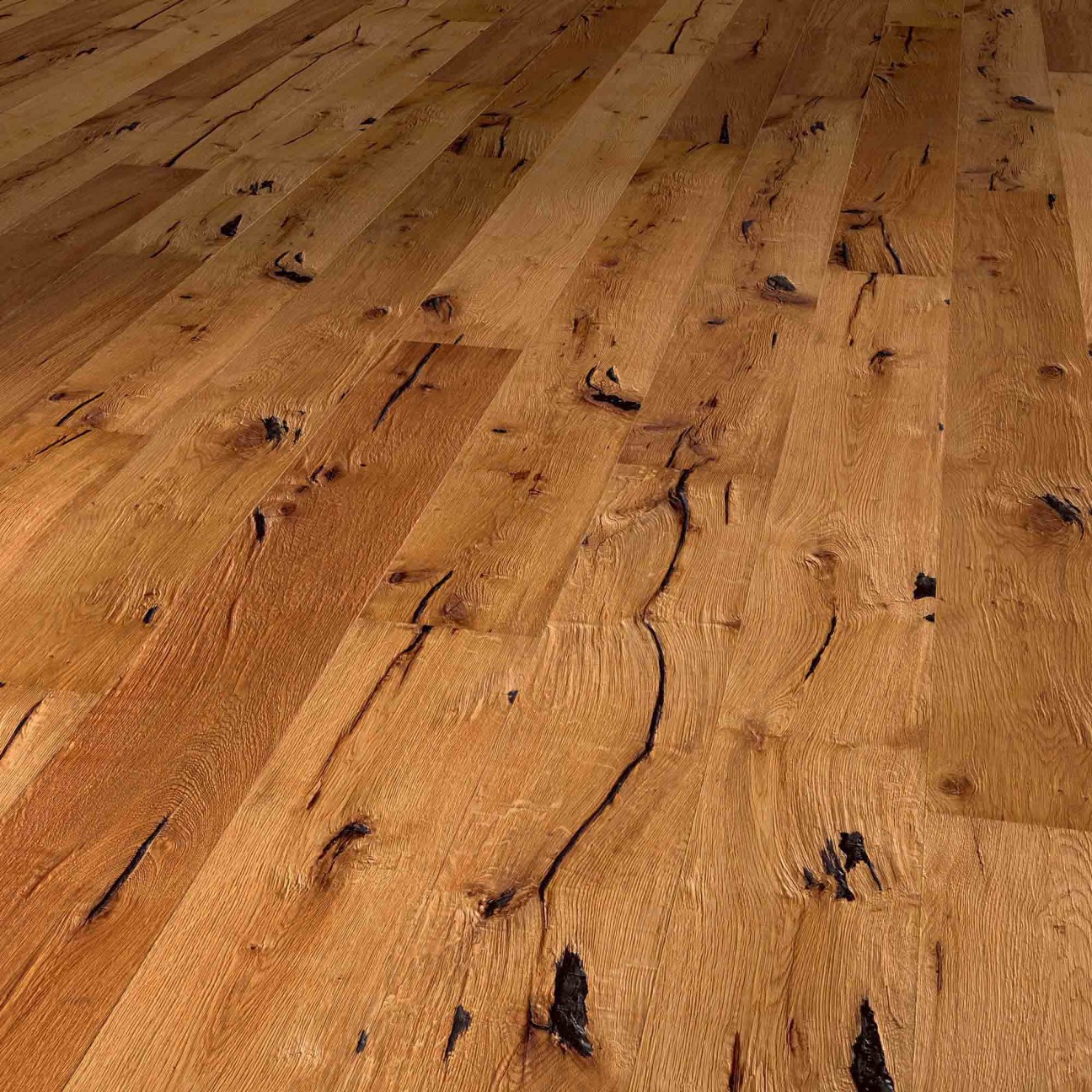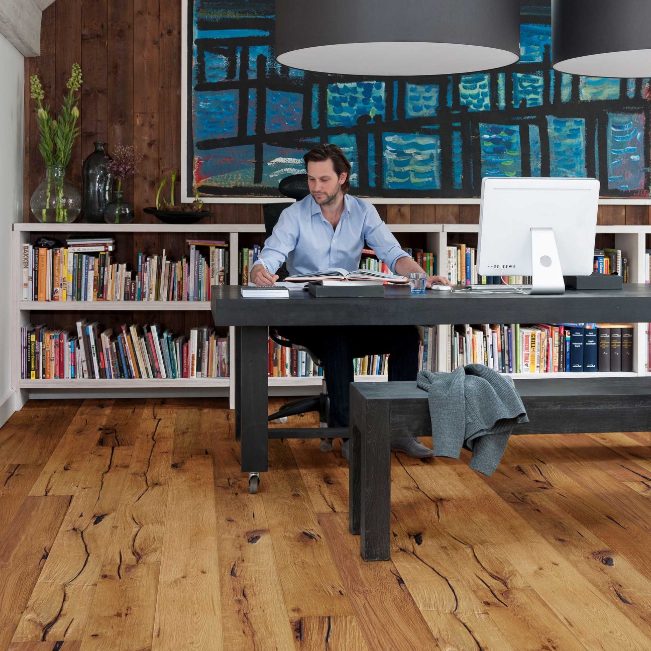 The Kilimanjaro from the Solidfloor Specials collection is a straight pattern oak floor, finished with a natural coloured oxidative oil. The floors from the Deep Brushed selection are recognizable through the deep brushing of the wood which makes the natural wood pattern especially prominent. This quality is presented beautifully in grazing light. The floor has a total thickness of 15 mm including the high quality 4 mm oak top layer. As part of the Rustic+ wood selection, which permits more and larger knots than in the Rustic or Mill Run selection, this floor has a lively appearance. Periodical maintenance using the Solidfloor Natural Hardwax Oil will ensure that your floor will stay beautiful for longer, lasting for years. In short, this is a quality oak floor with a 25 year guarantee.
