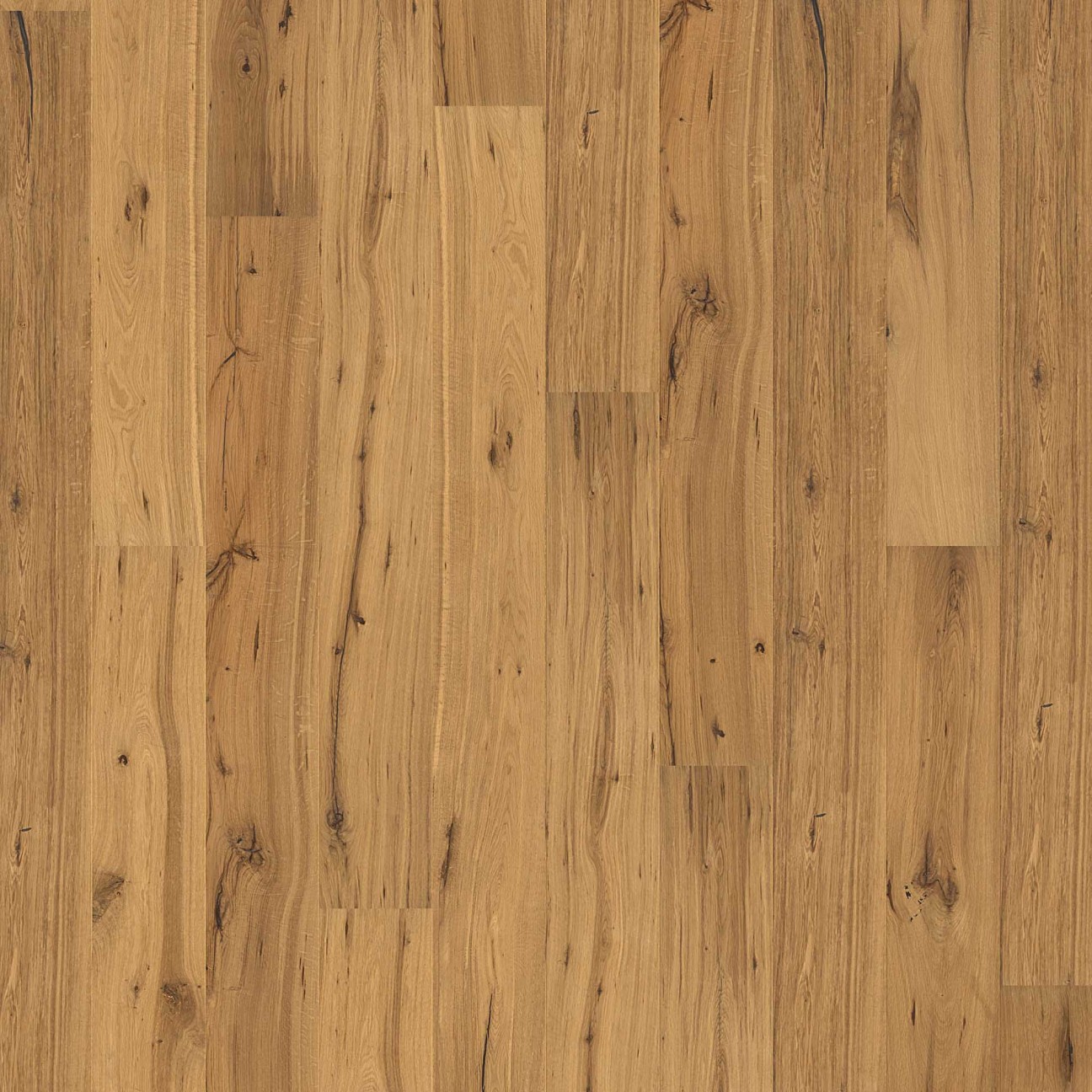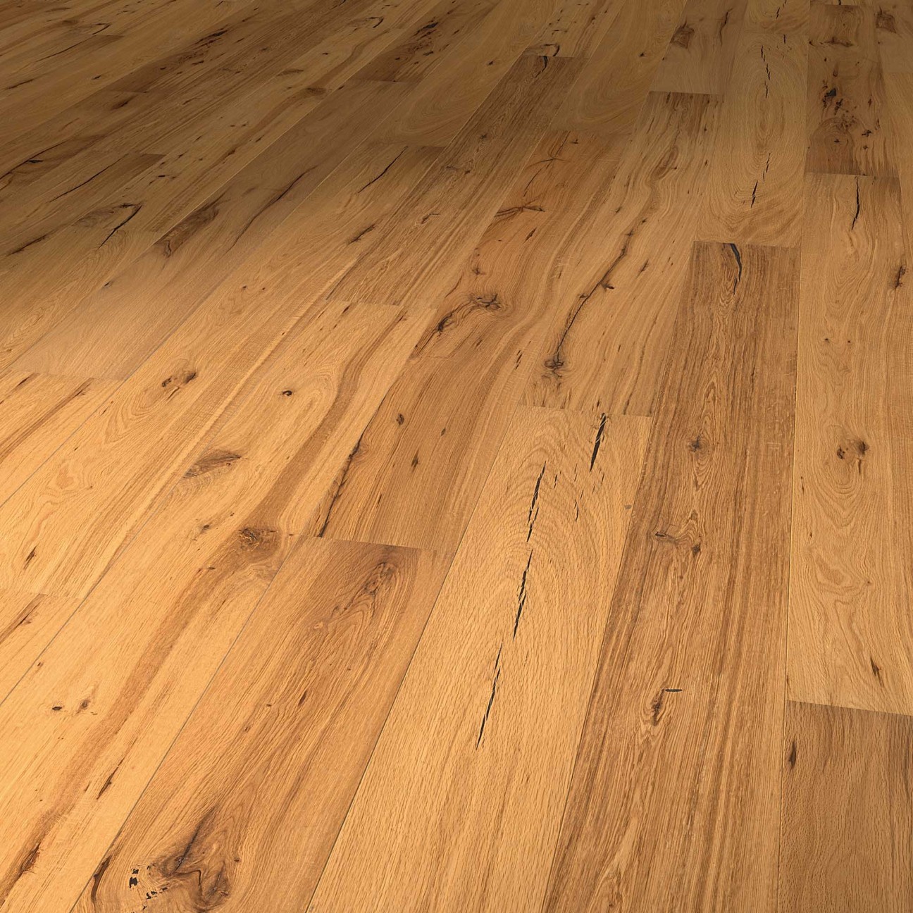 The Tuscany from the Solidfloor Specials collection is a straight pattern floor, finished with a natural coloured oxidative oil. The floors from the Distressed selection are recognizable through the artificial ageing process they undergo. This process causes the floor to look like it has already been used for many years. Because of this these floors are well suited towards robust interiors such as industrial or rural styles. Because the ageing of each plank is unique, each plank looks slightly different, giving a unique character to the floor. The floor has a total thickness of 15 mm including the high-quality 4 mm oak top layer. As part of the Rustic+ wood selection, which offers more and larger knots than in the Rustic or Mill Run selection, this floor has a lively appearance. Periodical maintenance with the Solidfloor Natrual Hardwax Oil will keep the floor beautiful for longer, lasting many years. In short, this is a quality oak floor with a 25 year guarantee.