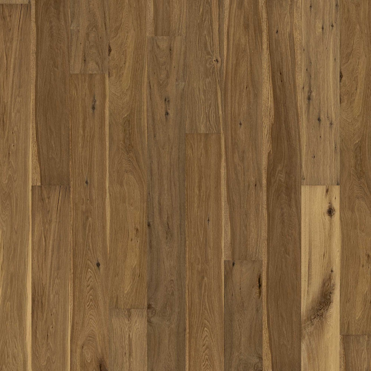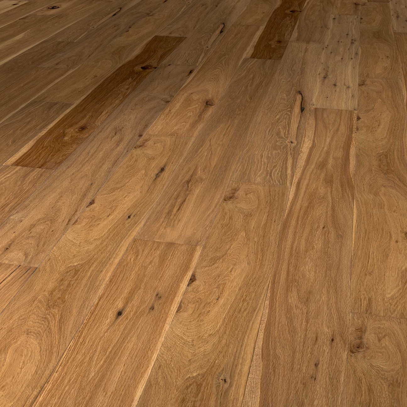 The Nevada from the Solidfloor Specials collection is a straight pattern oak floor, finished with natural coloured high solid (UV) oil. The floors from the Hand Scraped collection are recognizable through their sloping surface. This is because the floors are hand scraped. This quality is displayed beautifully in grazing light. Because the floor is hand scraped each plank is a little different, giving the floor unique character. Besides the characteristic sloping appearance of the Nevada, the floor is also recognizable through its rich colour. This is a result of the floor being smoked. The floor has a thickness of 15 mm including the high-quality 4 mm oak top layer. As part of the Rustic wood selection, which allows more and larger knots than in the Nature or Mill Run selection, this floor has a lively appearance. Periodical maintenance with the Solidfloor Natural Hardwax Oil will ensure that the floor stays beautiful for longer, lasting years. In short, this is a quality oak floor with a 25 year guarantee.